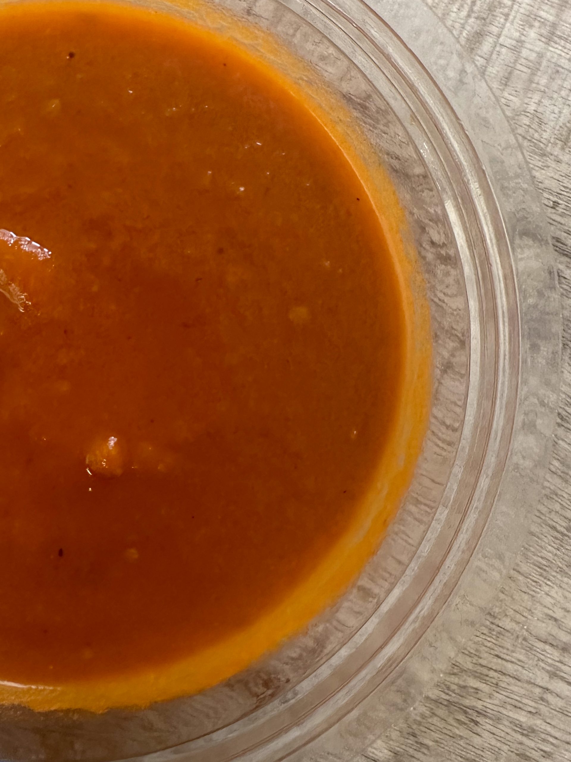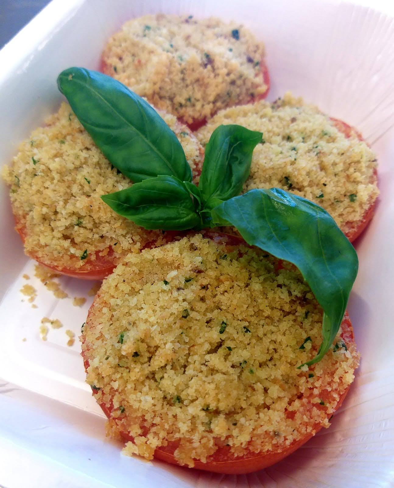INGREDIENTI: pomodori, pane (contiene GLUTINE), acciughe, formaggio parmigiano (contiene LATTOSIO), AGLIO, prezzemolo, sale, pepe.