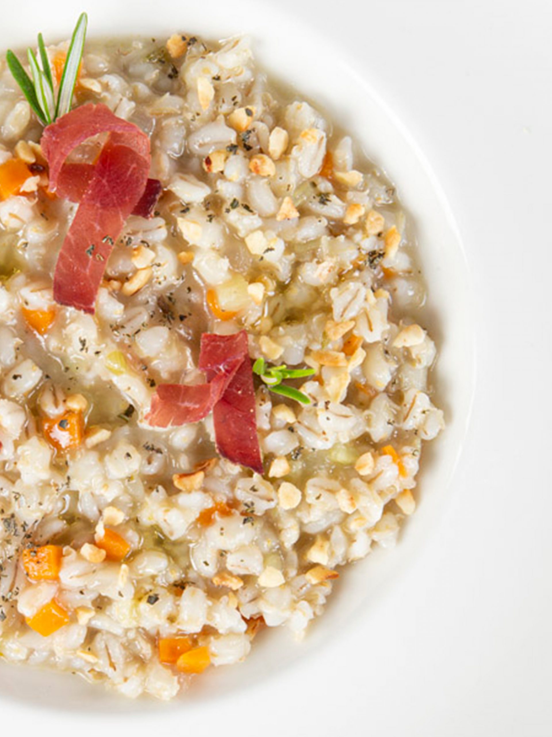 INGREDIENTI: FARRO (contiene GLUTINE) ,carote, bresaola( Carne di bovino,sale, aromi naturali, aglio,vino rosso(SOLFITI), destrosio, conservanti E250. E251) formaggio casera (contiene LATTOSIO) ,olio evo, sale.