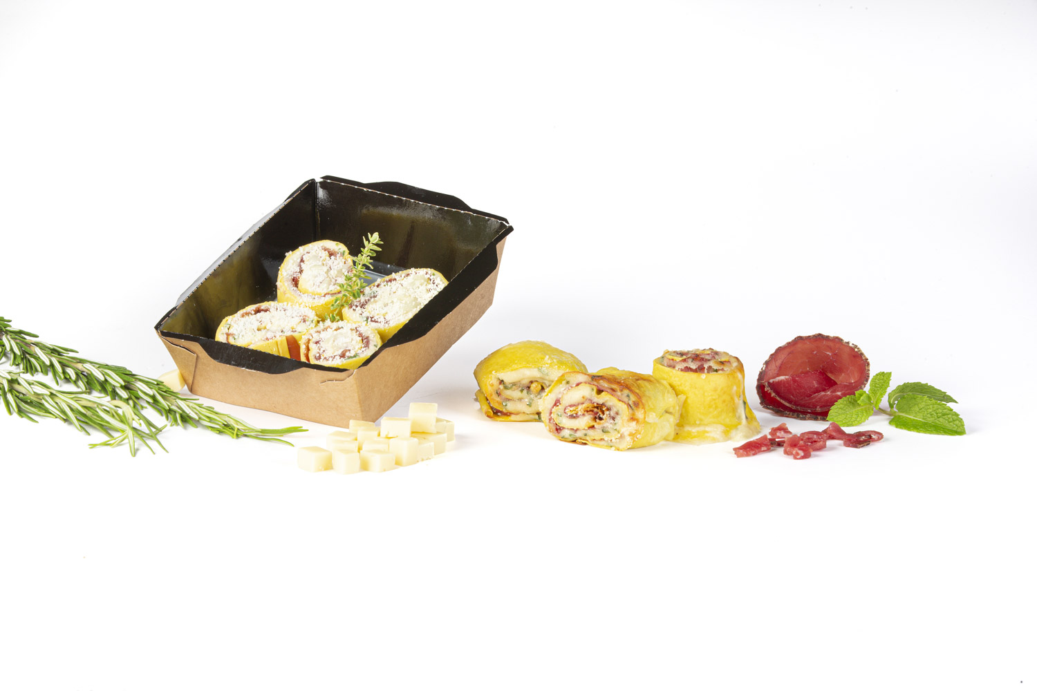 INGREDIENTI: sfoglia " semola di grano duro,farina di grano tenero (contiene GLUTINE) acqua, UOVA (19%)" latte (contiene LATTOSIO) , farina(contiene GLUTINE) , bresaola, rucola, formaggio casera (contiene LATTOSIO) formaggio grana (contiene LATTOSIO, sale,caglio LISOZIMA di UOVO) olio di semi, sale,…