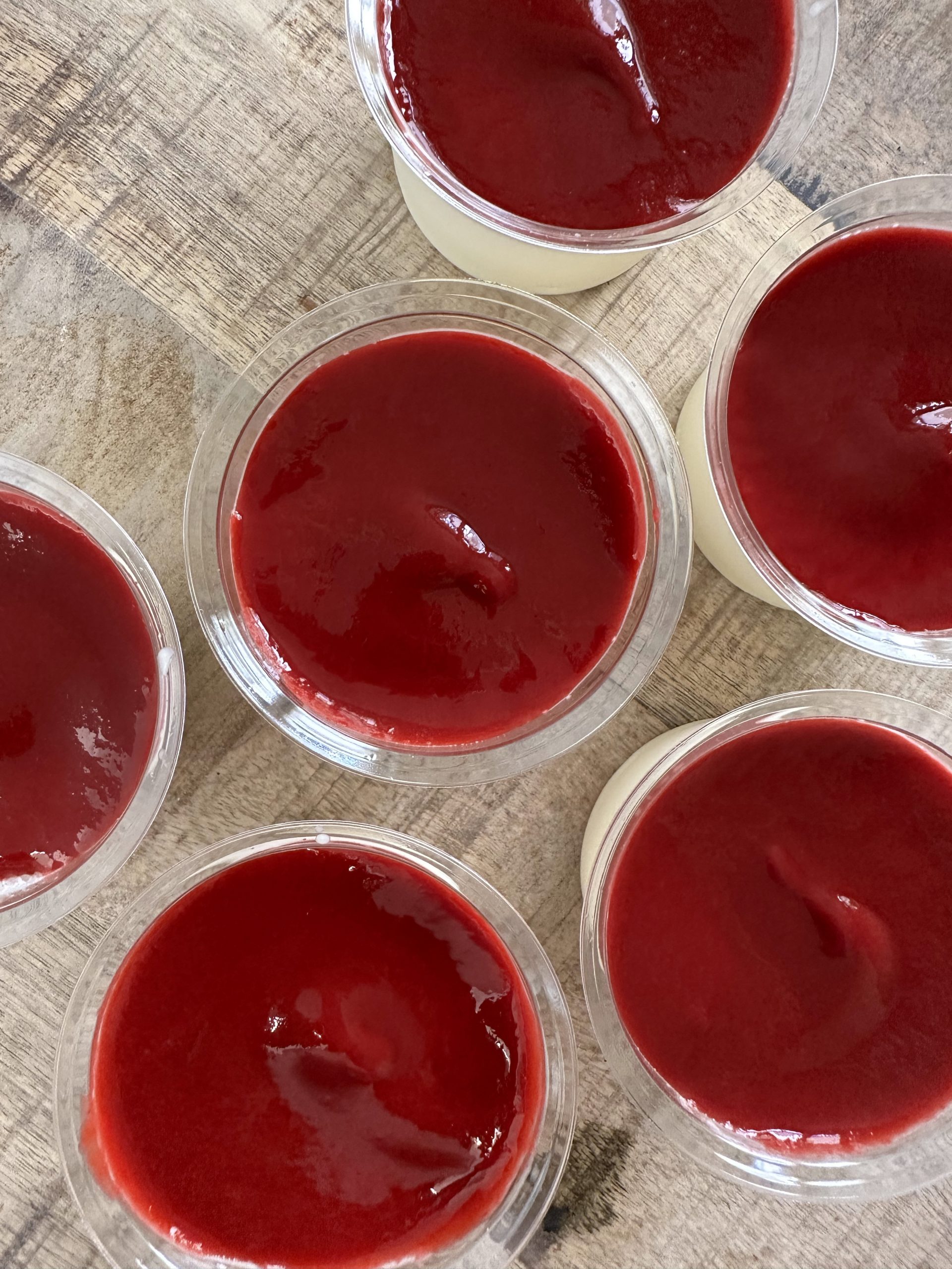 INGREDIENTI:latte e panna(contiene LATTOSIO),aromi,gelatificante,zucchero . coulis: fragole, mirtilli , lamponi,80%, zucchero Vaschetta da 100gr