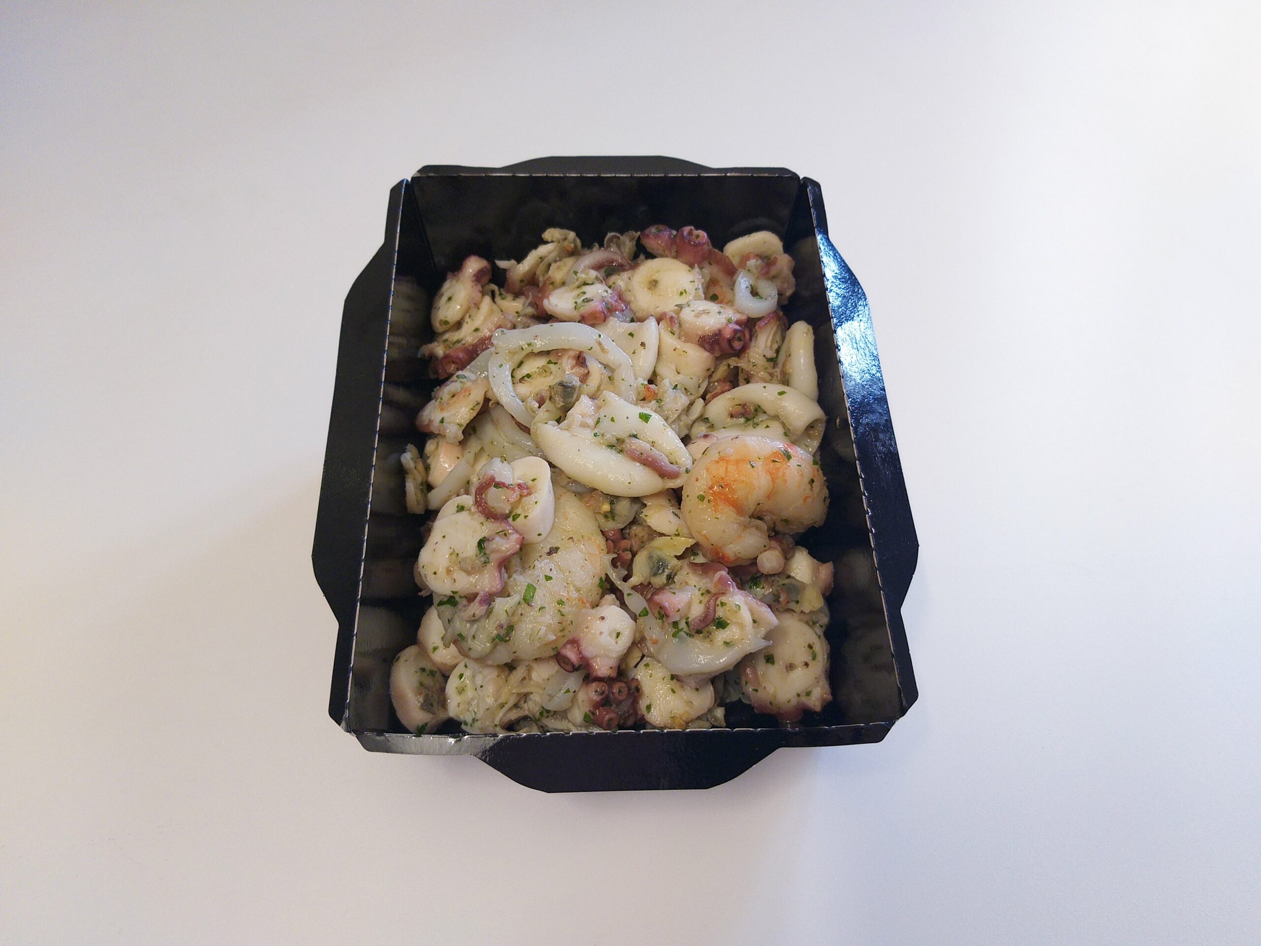 INGREDIENTI: polpo, calamari, seppioline, cozze, vongole, gamberi, olio evo, prezzemolo, limone, aceto di mele, sale, pepe. confezione da 300gr