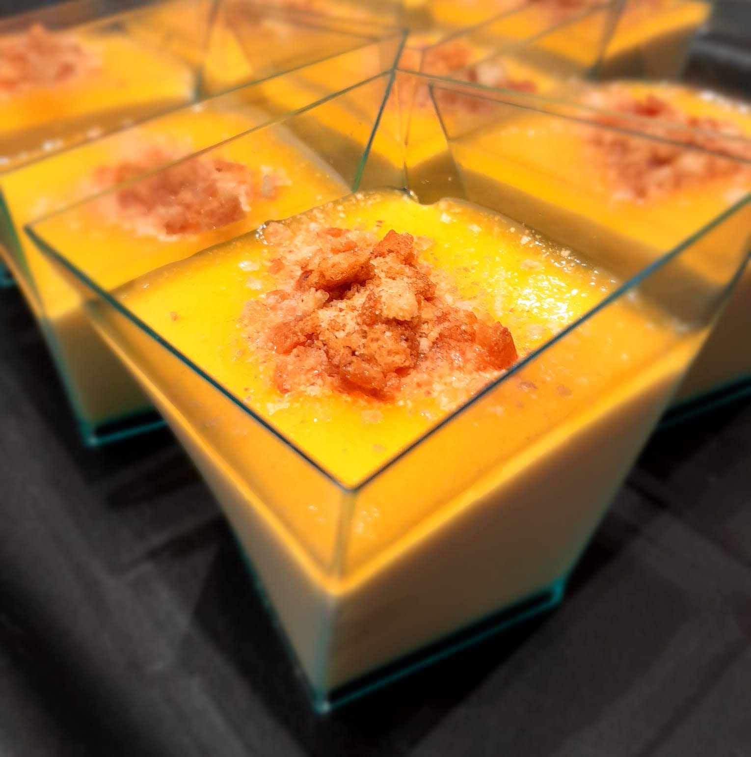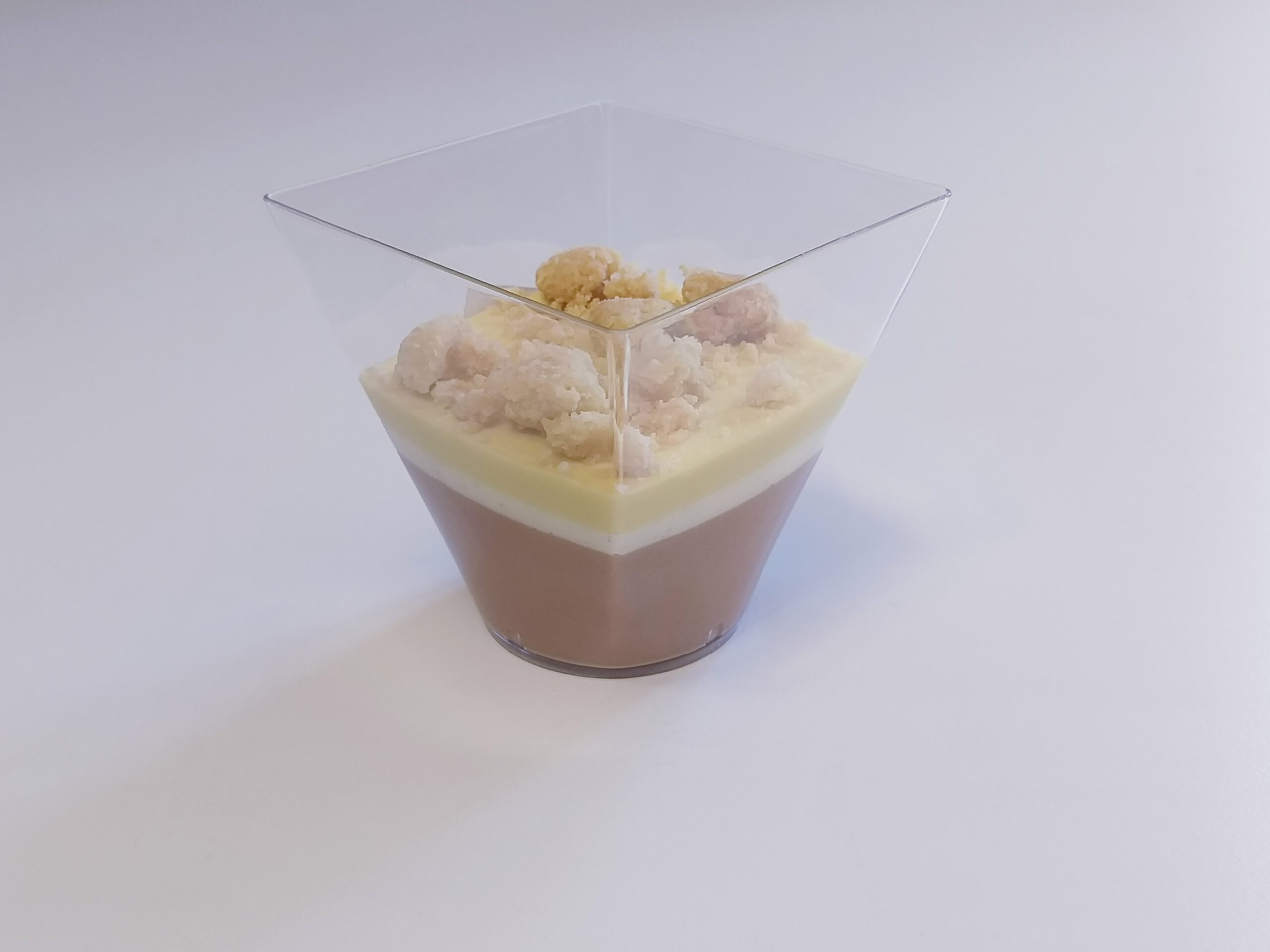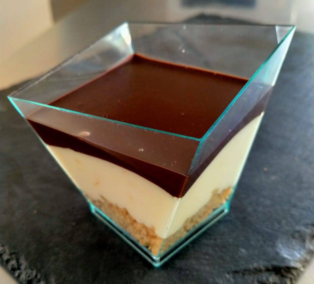 INGREDIENTI: ricotta(contiene LATTOSIO),mascarpone,(contiene LATTOSIO) panna,(contiene LATTOSIO), aromi, scorza arancio, gelatificante, zucchero. Crumble: biscotti (contiene GLUTINE) burro (contiene LATTOSIO) coulis : cioccolato, zucchero