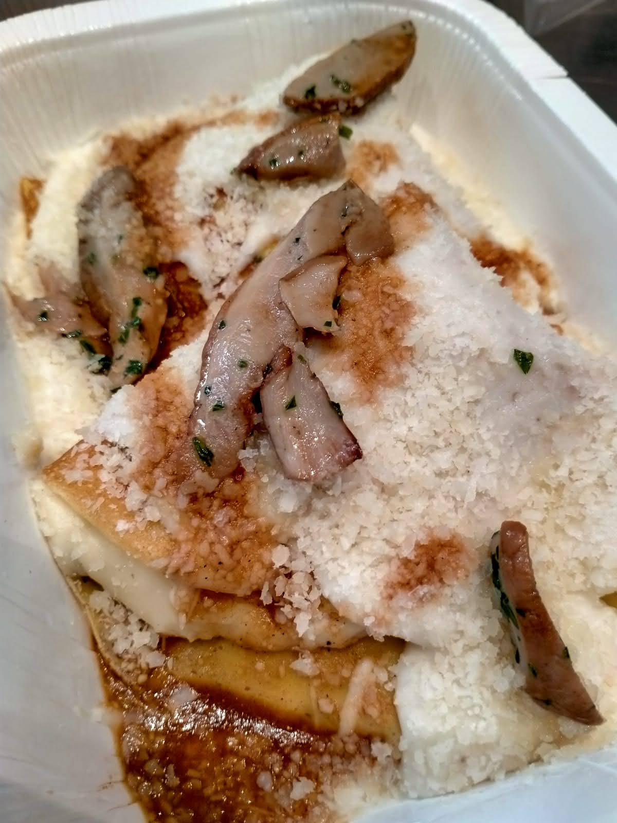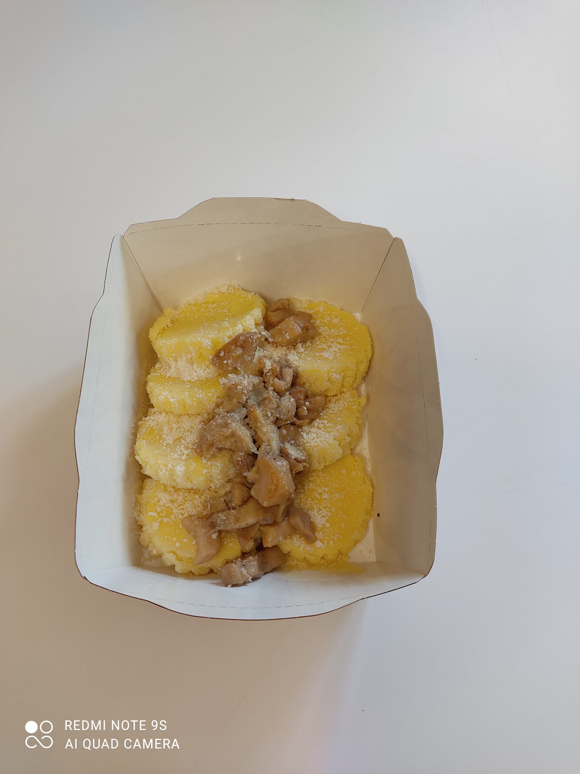 Bocconcini di vitello (contiene SEDANO e GLUTINE) , FUNGHI,  accompagnato da  polenta taragna (contiene LATTOSIO)