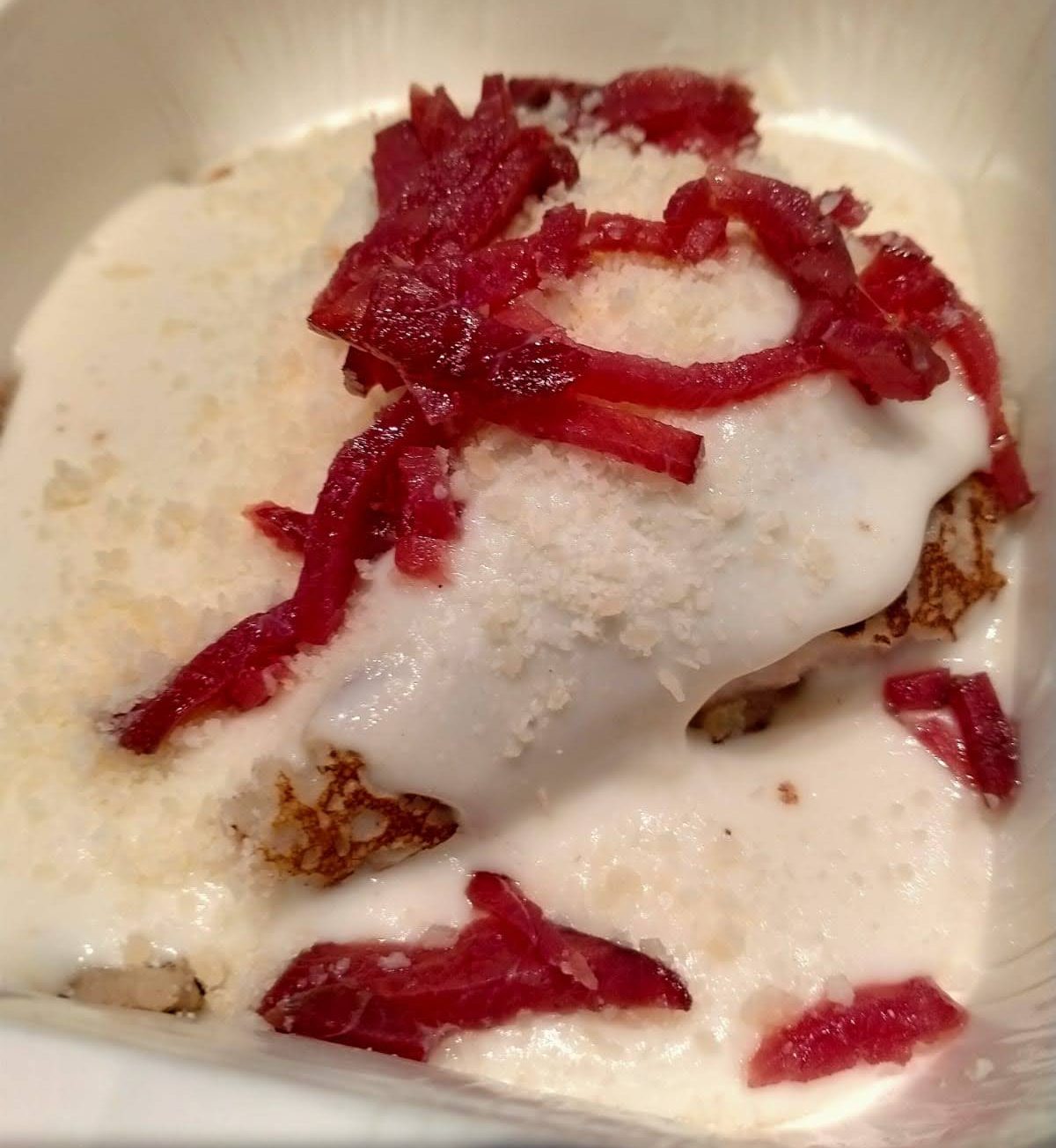 INGREDIENTI: Crespella 20 % all'UOVO con ripieno 80% UOVO, BURRO,LATTE e prodotti  a base di latte incluso( LATTOSIO) farina bianca00 (contiene GLUTINE) latte (contiene LATTOSIO), sale. per la besciamella :latte( contiene LATTOSIO) , burro( contiene LATTOSIO) ,olio evo, farina(contiene GLUTINE)…