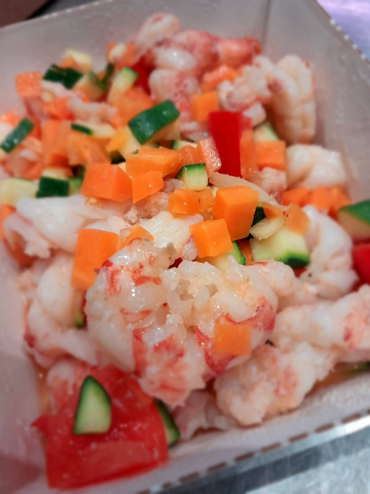 INGREDIENTI: POLPO, GAMBERI, pomodorini,zucchine,carote, sale, olio, pepe