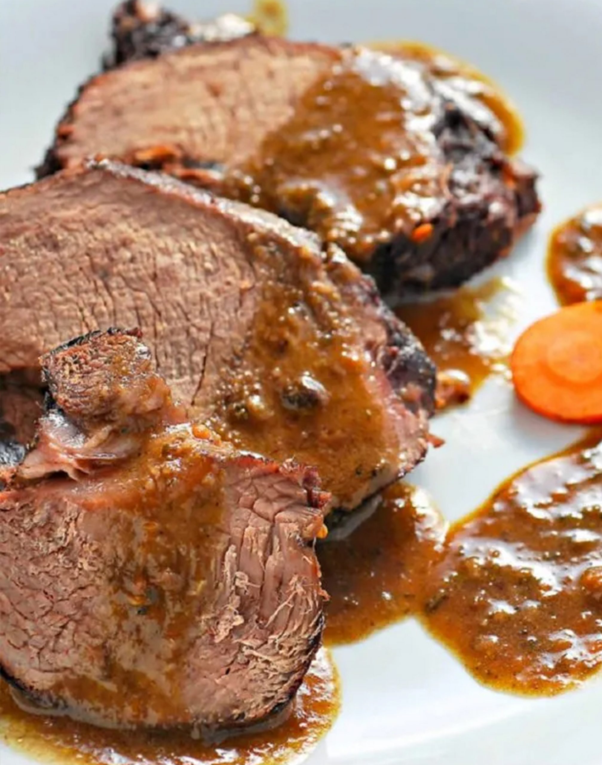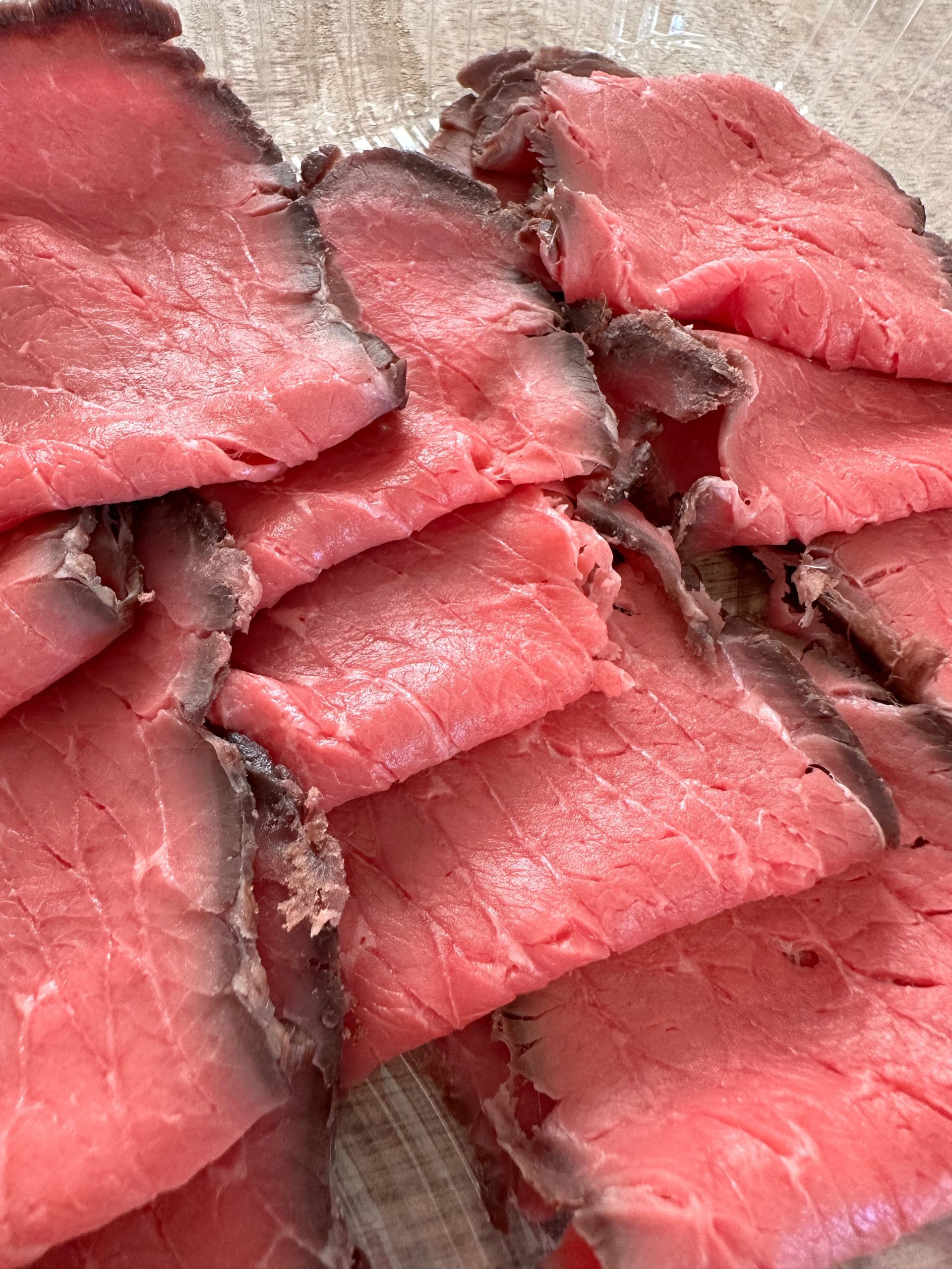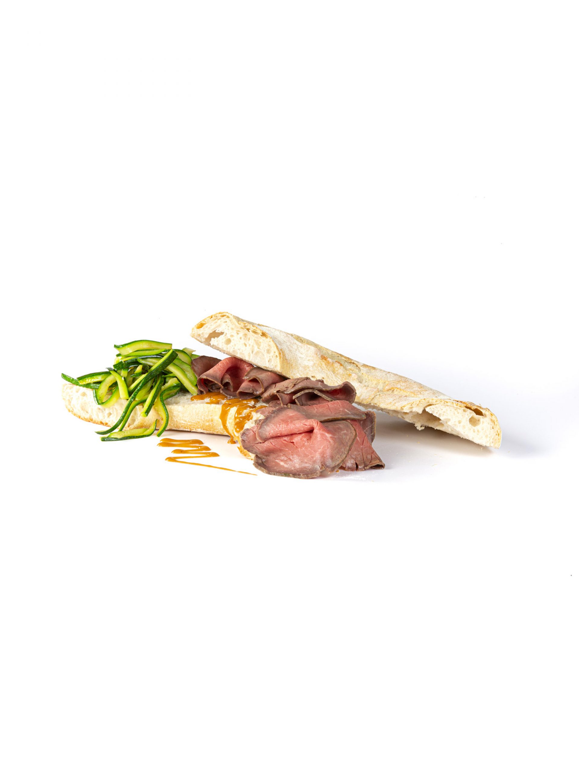 roast beef all'inglese, julienne di zucchine, salsa tartara