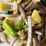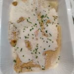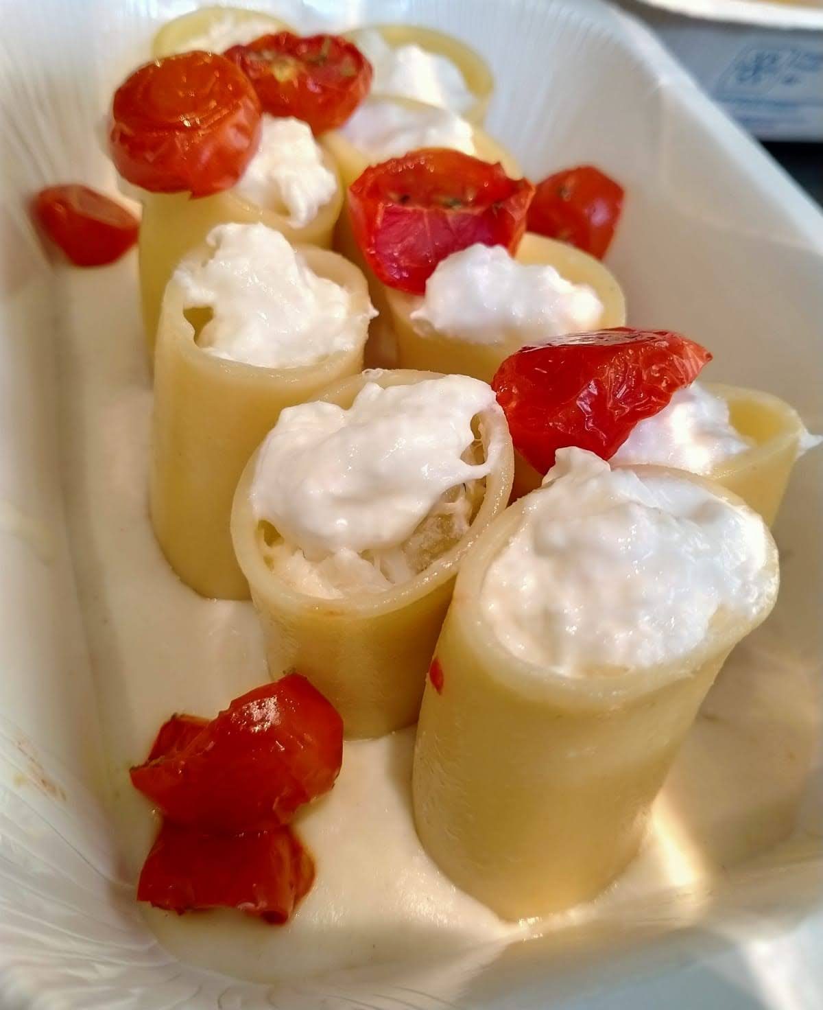 ingredienti:pasta all' UOVO: semola di grano duro, farina di garno tenero(contiene GLUTINE) ,acqua, UOVA, Baccalà , panna e ricotta(contengono LATTOSIO), scalogno, porro, prezzemolo, alloro. sale, pepe Besciamella: latte e burro (contengono LATTOSIO) , NOCE MOSCATA, farina(contiene GLUTINE) pomodoro, basilico, grana…