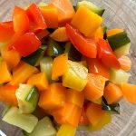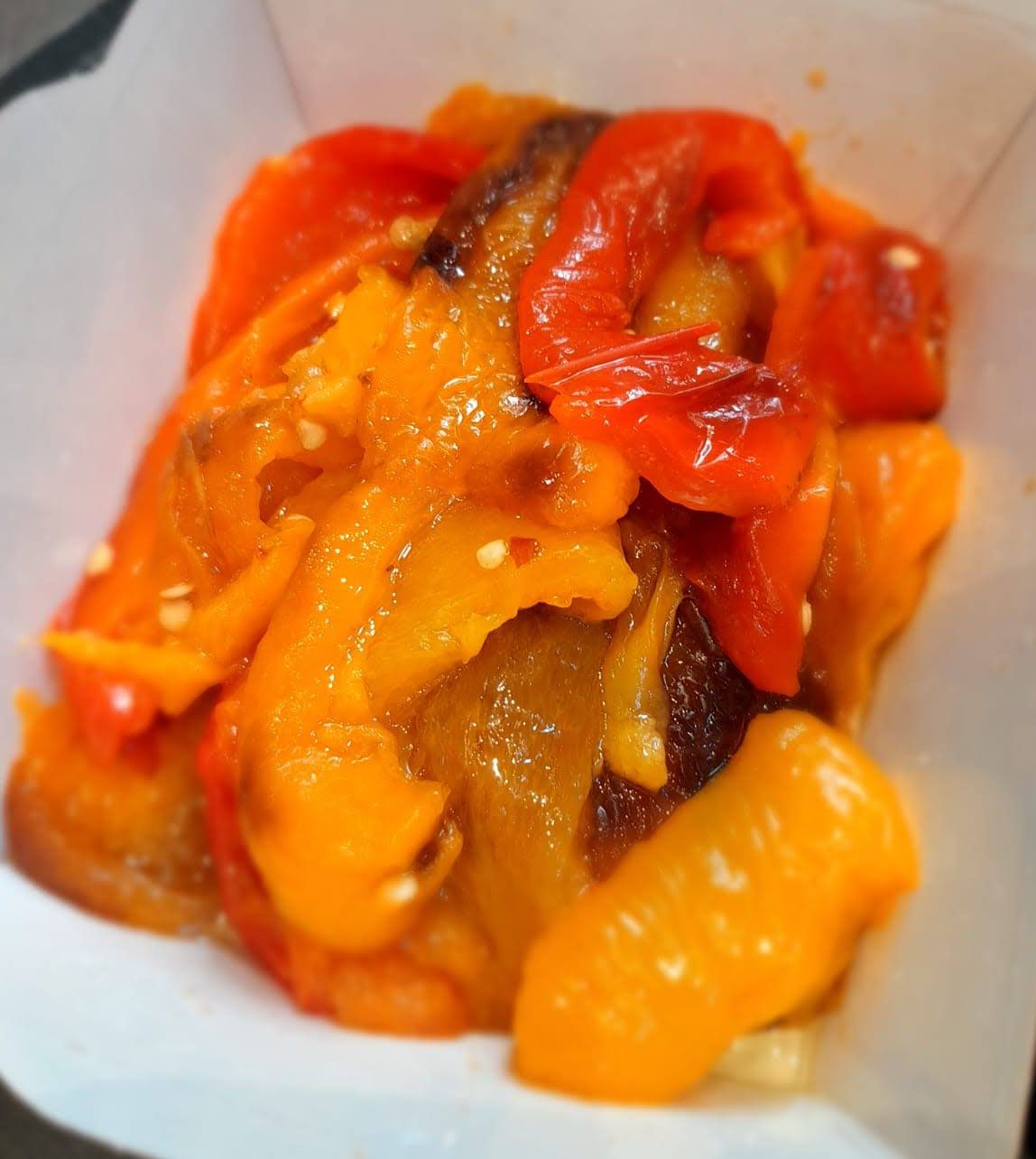INGREDIENTI:  peperoni misti, cipolle, pomodoro, olio evo, sale,