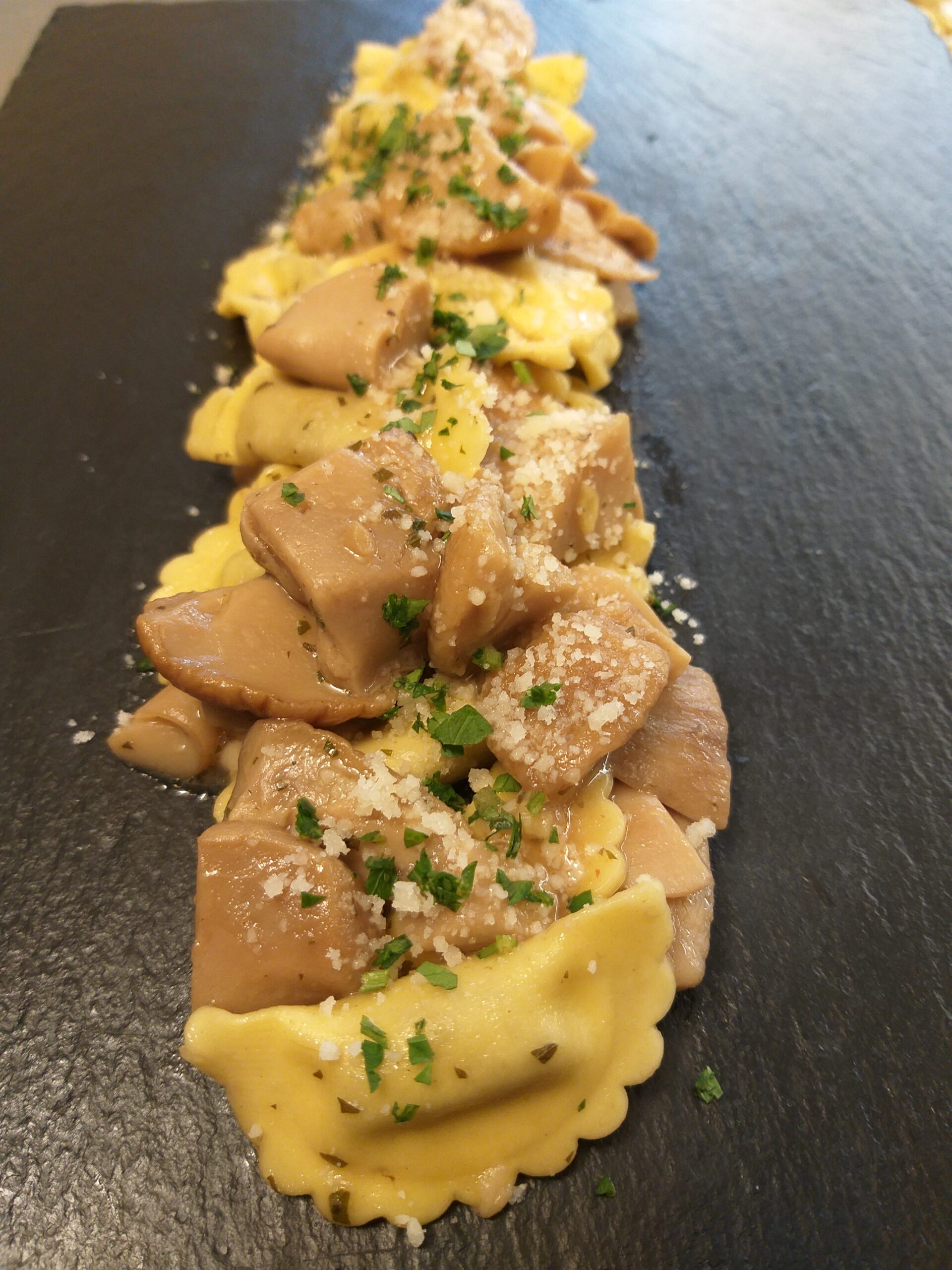 INGREDIENTI:pasta all'UOVO, ( contiene GLUTINE e UOVA), per il ripieno: ricotta(contiene LATTOSIO),asparagi, parmigiano(contiene lisozima dell'UOVO).NOCE MOSCATA, sale , pepe) besciamella: latte e burro (contiene LATTOSIO) , farina00(contiene GLUTINE)NOCE MOSCATA, parmigiano(contiene lisozima dell'UOVO)sale, pepe Salsa alle SPUGNOLE: olio evo,  scaologno, brandy,…