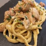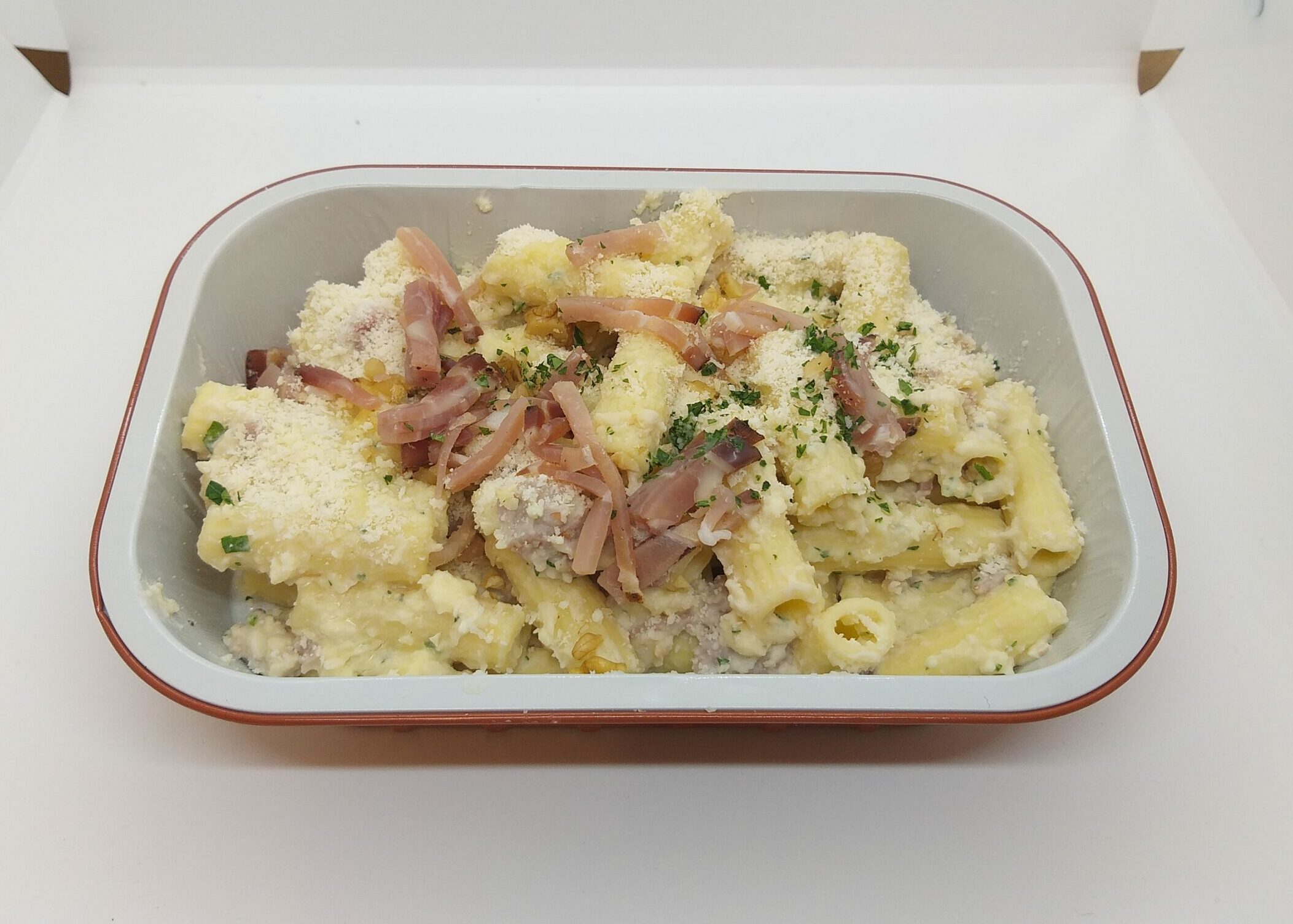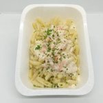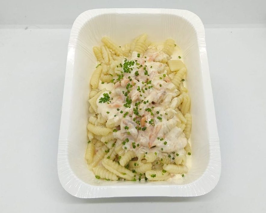 INGREDIENTI: farina 00 (contiene GLUTINE), acqua, salmone affumicato, panna (contiene LATTOSIO) , scalogno, olio evo, sale.