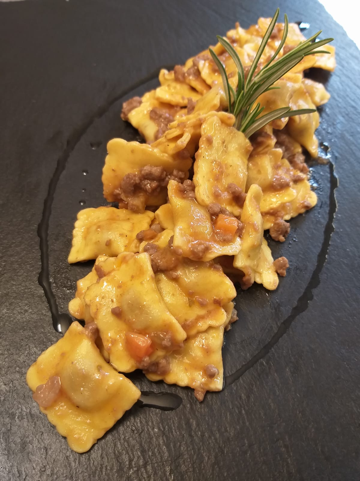 INGREDIENTI:farina 00 e farina semola, (contiene GLUTINE) tuorlo d'UOVO, grana (contiene LISOZIMA dell'UOVO) carne di bovino,pomodoro,AGLIO, sedano,vino (contiene SOLFITI) prezzemolo,sale.burro(contieneLATTOSIO)salvia,DEMIGLACE:ossa bovino,concentrato di pomodoro,aromi,amido modificato di mais, farina00(contiene GLUTINE)grasso di palma,zucchero,coloranti (E150c),vinoMadeira,cipolla e scalogno in polvere,sciroppo di zucchero caramellato,addensanti(gomma di xantano)estratto…