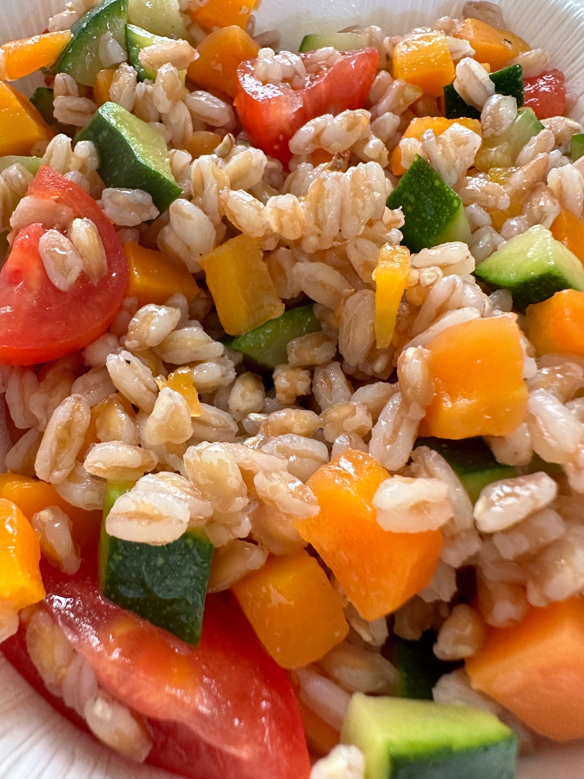 INGREDIENTI: farro(contiene GLUTINE) , carote, zucchine, pomodorini, olio evo, sale, pepe.