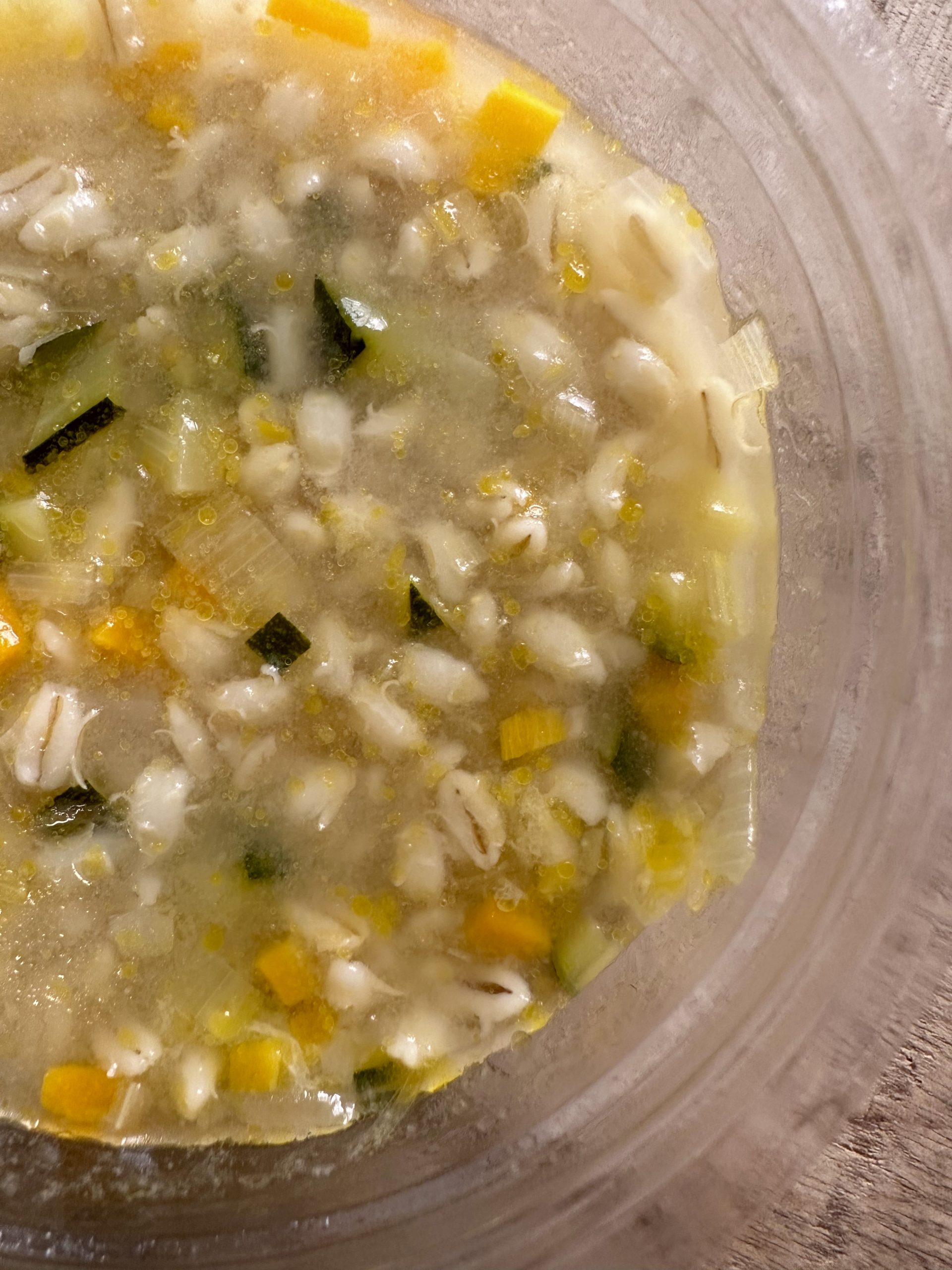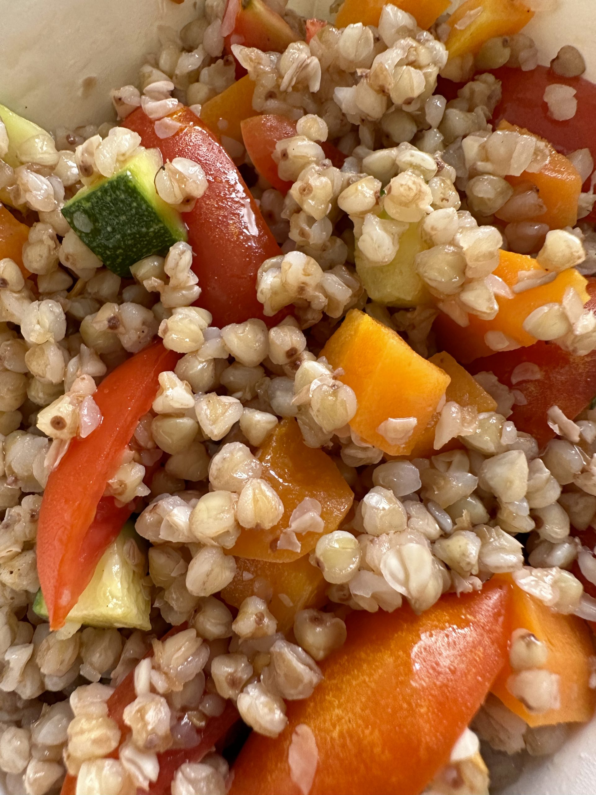 INGREDIENTI: grano saraceno (contiene GLUTINE) carote, zucchine, piselli, prezzemolo, olio evo, sale, pepe.