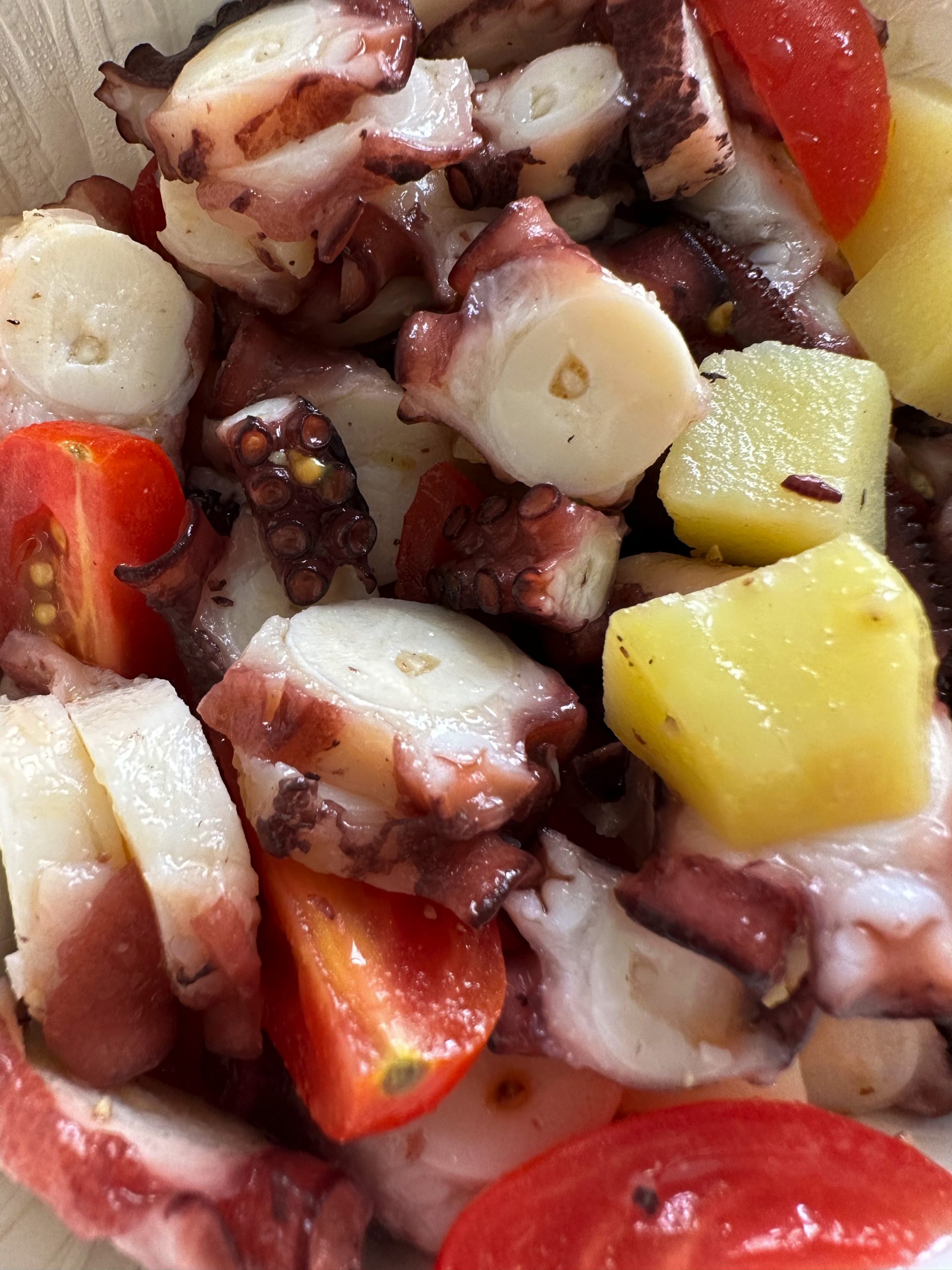 INGREDIENTI:POLPO, patate, pomodorini, olio, sale,pepe. vaschetta da 0.200 gr.