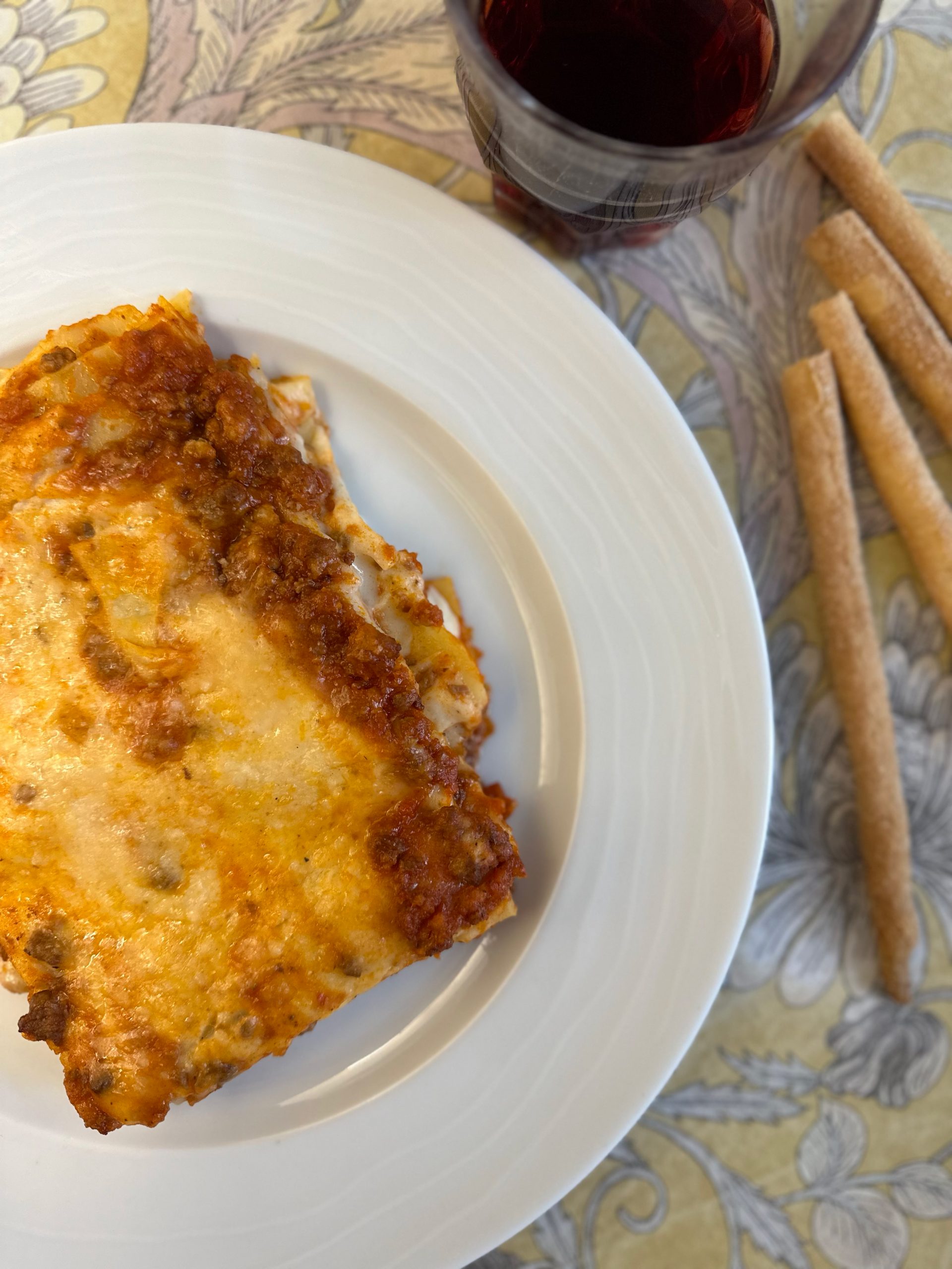 INGREDIENTI: carne di bovino adulto, pomodoro, vino (contiene SOLFITI) sfoglia"semola di grano duro,farina di grano tenero (contiene GLUTINE) acqua,UOVA (19%)", sale. Besciamella :Latte (contiene LATTOSIO)burro (contiene LATTOSIO) olio evo, farina 00 bianca (contiene GLUTINE) NOCE MOSCATA. Formaggio grana(contiene LISOZIMA dell'UOVO)