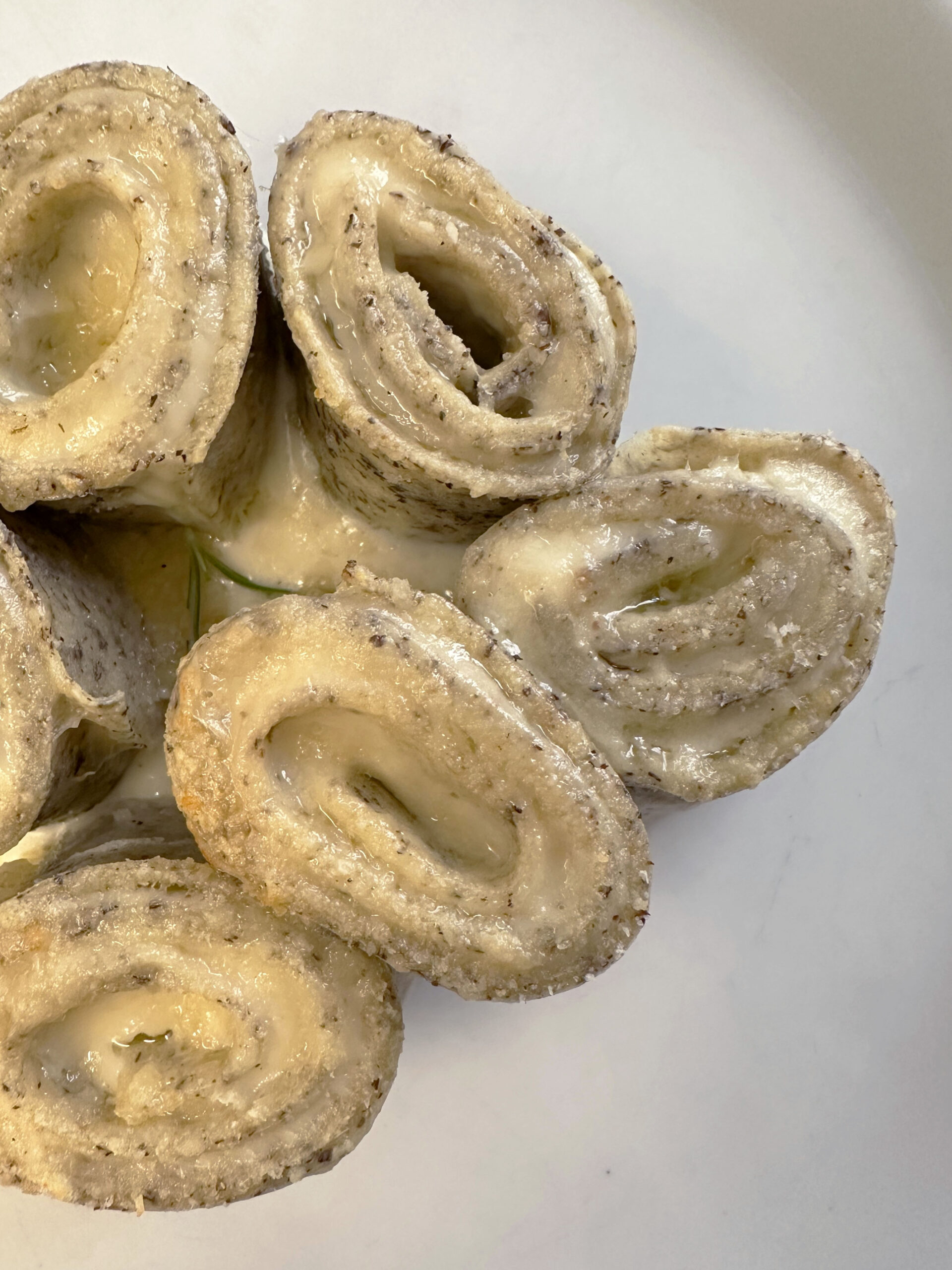 INGREDIENTI:Crespella 20% all’UOVO con ripieno 80% UOVA, latte (contiene LATTOSIO ) farina bianca 00 (GLUTINE)farina nera. Per il ripieno: besciamella con latte (contiene LATTOSIO ) olio evo; farina 00 bianca (contiene GLUTINE) sale, NOCE MOSCATA. scamorza, speck (carne di suino,…