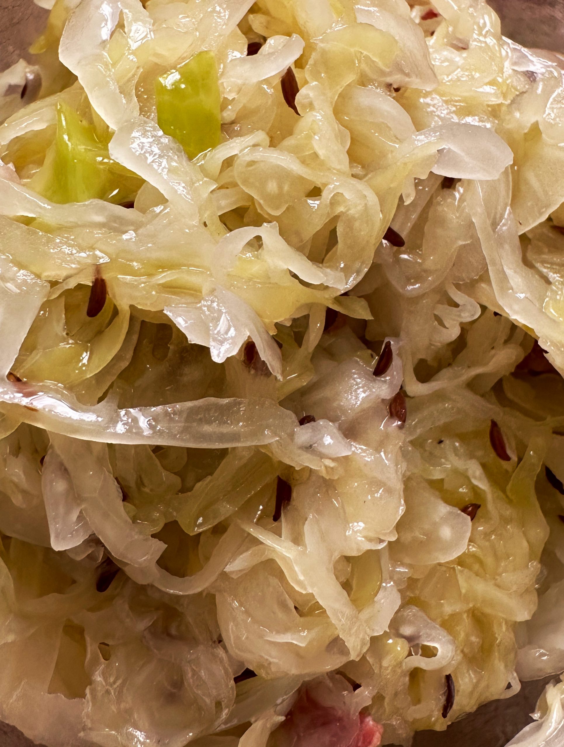 INGREDIENTI:crauti aceto speck, (carne di suino,sale, spezie,destrosio,piante aromatiche, conservanti:nitrito di sodio)olio evo,cumino,