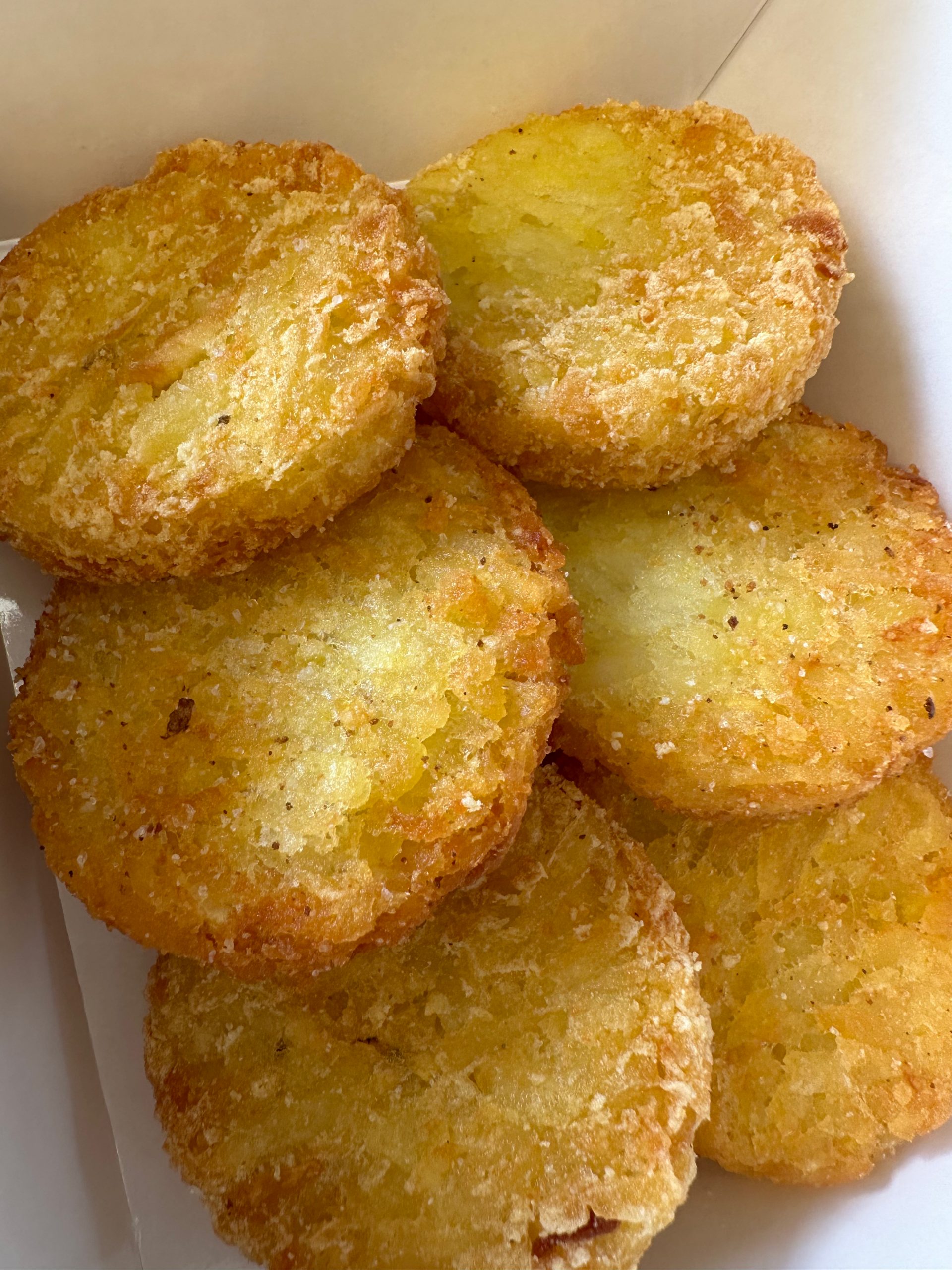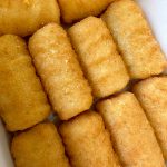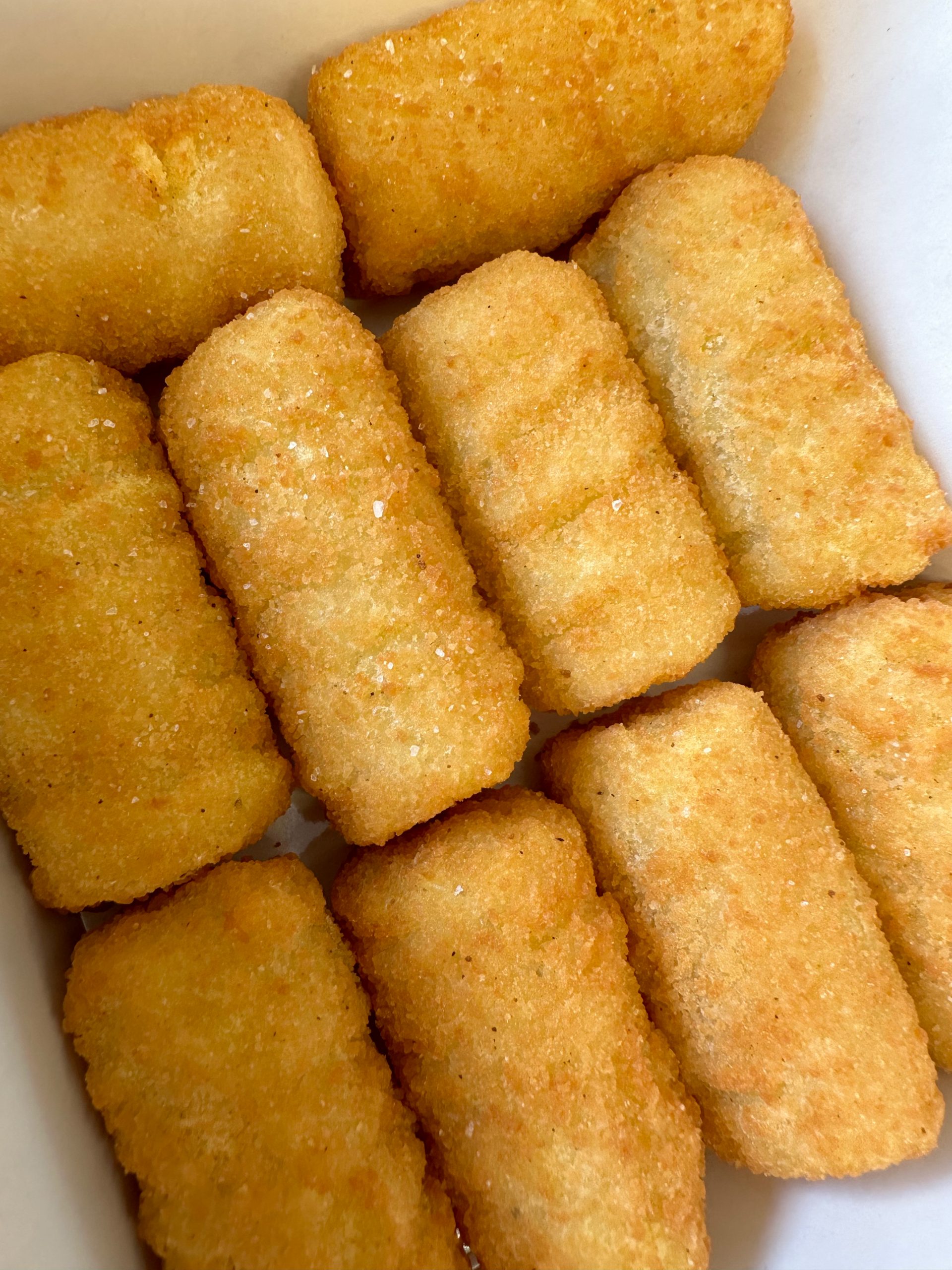INGREDIENTI:Patate,olio di girasole,rivestimento(4,6%)amidomodificato,farina di riso,destrina,fibre di piselli,agentilievitanti(E450,E500,destrosio,addensante,gommadi xantano,protina del pisello,sale(0,4%). vaschetta da 6 pz
