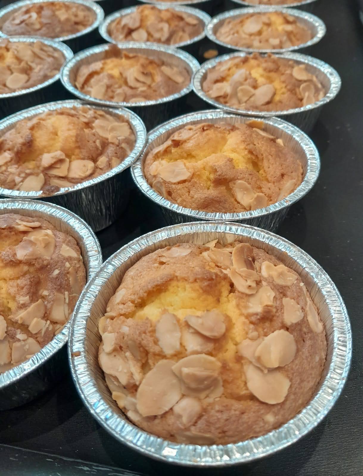 INGREDIENTI: zucchero, burro( contiene LATTOSIO), UOVA, farina (contiene GLUTINE), farina di MANDORLE, farina di mais, MANDORLE. confettura di albicocche.