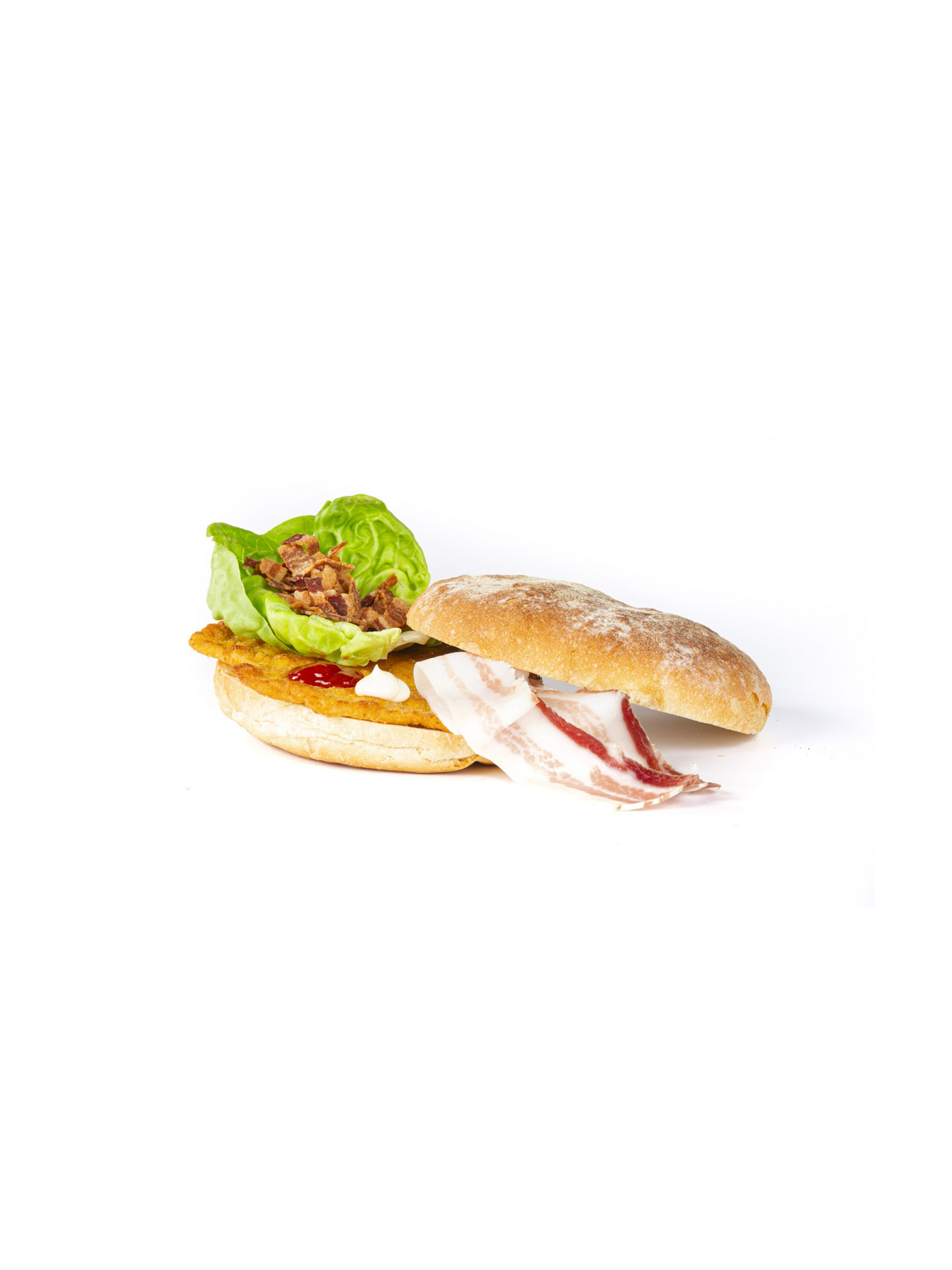 cotoletta di tacchino impanata, bacon croccante, lattuga e maionese