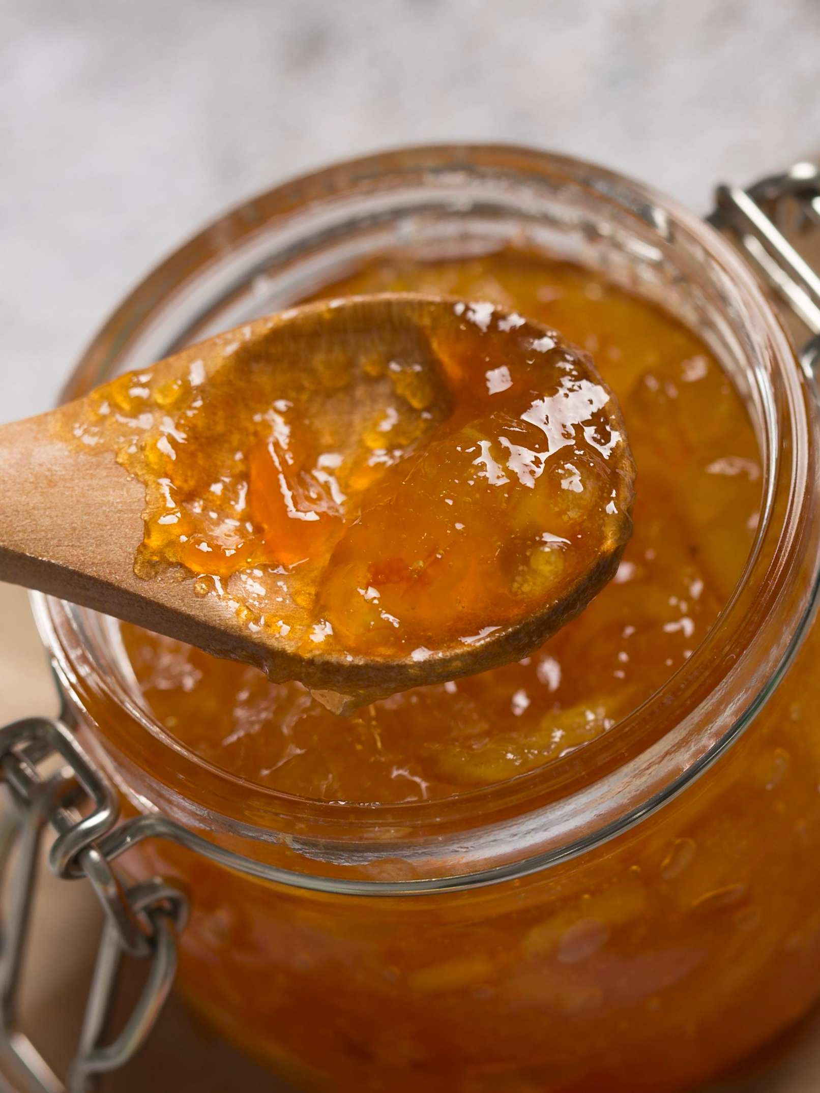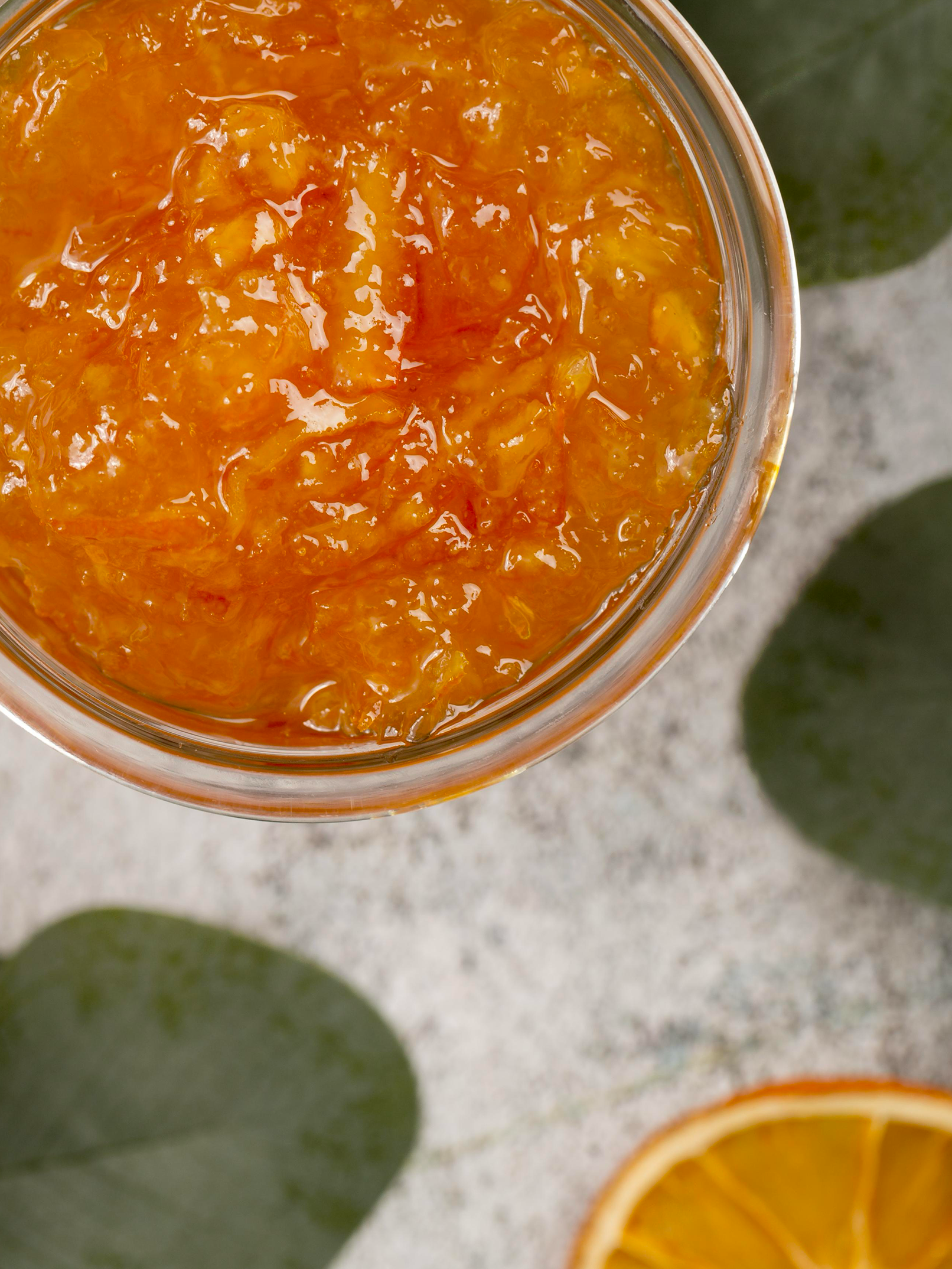 Arance di Sicilia con pezzi di scorza, zucchero di canna. Frutta utilizzata 75g per 100g Senza coloranti e conservanti. vasetto da 330g