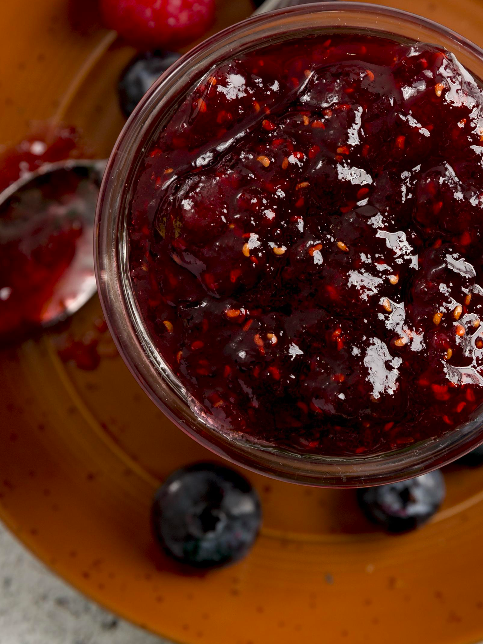 INGREDIENTI: frutta di porzione variabile: mirtilli, lamponi, more, fragoline, zucchero, acqua, pectina, vanillina. Frutta utilizzata 56% vasetto da 200gr